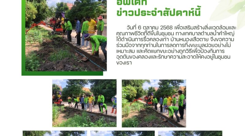 วันที่ 6 ตุลาคม 2568 เพื่อเสริมสร้างสิ่งแวดล้อมและคุณภาพชีวิตที่ดีขึ้นในชุมชน ทางเทศบาลตำบลน้ำคำใหญ่ได้ดำเนินการรื้อคลองเก่า บ้านหนองเสือตาย จึงขอความร่วมมือจากทุกท่านในการลดการทิ้งขยะมูลฝอยอย่างไม่เหมาะสม