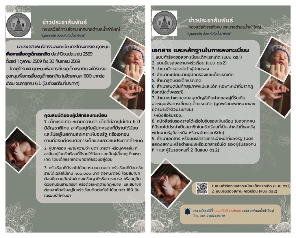 ข่าวกิจกรรม-โครงการ-รูปภาพข่าวประชาสัมพันธ์ ประชาสัมพันธ์การรับลงทะเบียนการโครงการเงินอุดหนุน เพื่อการเลี้ยงดูเด็กแรกเกิด ประจำปีงบประมาณ 2569 7 พฤศจิกายน 2025 namkamyai