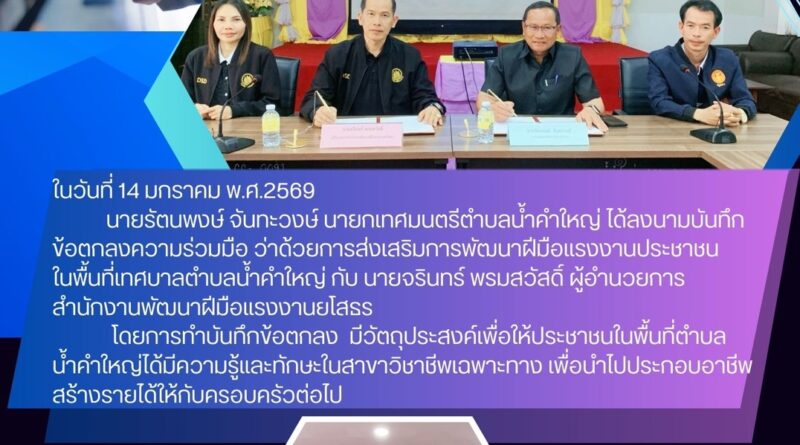 ลงนามบันทึกข้อตกลงความร่วมมือว่าด้วยการส่งเสริมการพัฒนาฝีมือแรงงานประชาชนในพื้นที่เทศบาลตำบลน้ำคำใหญ่